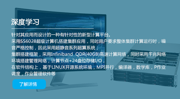 從用戶的實際需求到解決方案的設計、部署,都是量身定做;無論是計算架構的制定還是產品的定制,以至于技術支持的定制,我們都以用戶需求為基本出發點,以更高的性價比為用戶提供更高質量的服務。